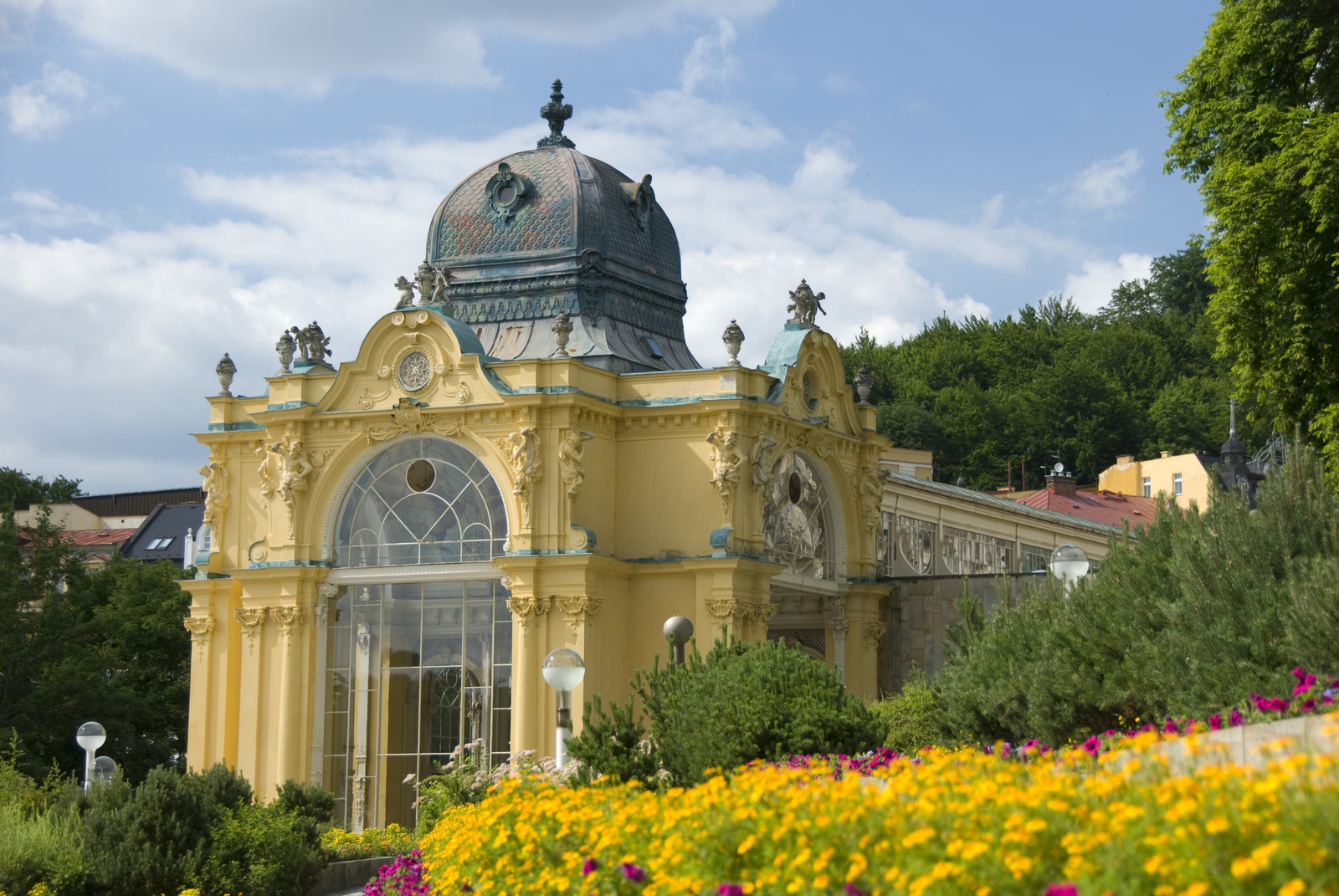 Hlavní lázeňská kolonáda nebo také Kolonáda Maxima Gorkého patří neodmyslitelně k symbolům Mariánských Lázní. Kolonáda je historickou památkou českého lázeňství. Novobarokní kolonádu nechal postavit v letech 1888–1889 opat kláštera Teplá na půdorysu původního „kursálu“ (135 x 12 metrů) místním stavitelem Johannem Koenigem podle projektů vídeňských architektů Miksche a Niedzielského. Její ocelo-litinová konstrukce byla vyrobena v blanenských strojírnách knížete Salma. Kolonáda je vzácným příkladem dobových staveb, jaké bývaly v minulosti v našich i zahraničních lázních a postupně byly likvidovány nebo modernizovány. Zdejší kolonáda přežila. Její rekonstrukce proběhla v letech 1973–1981 a ve svém průběhu se změnila v rámci generální modernizace celé promenády mezi pavilony Křížového a Karolinina pramene. Cyklus nástropních fresek s motivy „Člověk a vesmír“ je dílem malíře Josefa Vyleťala a bronzové reliéfy na stěnách kolonády vytvořil Antonín Kuchař.