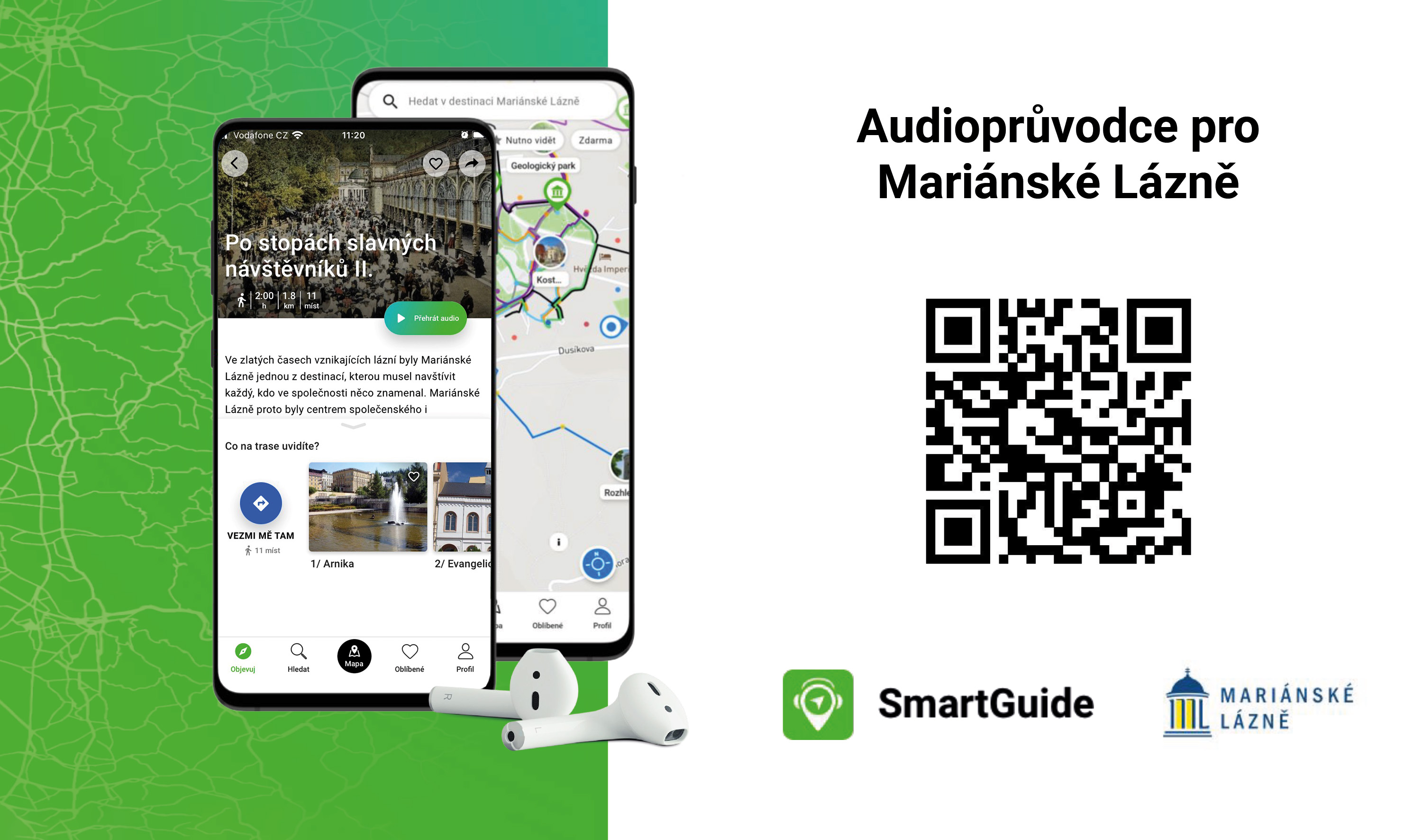 Plánujete výlet do Mariánek a chcete se připravit dopředu? Chcete mít na programu i prohlídku města, ale nehodí se vám čas či téma prohlídky s živým průvodcem? Nebo si naopak chcete dopředu nastudovat, co nesmíte při pobytu v lázeňském městě minout? Není nic lehčího než si stáhnout do svého chytrého mobilu chytrého průvodce.