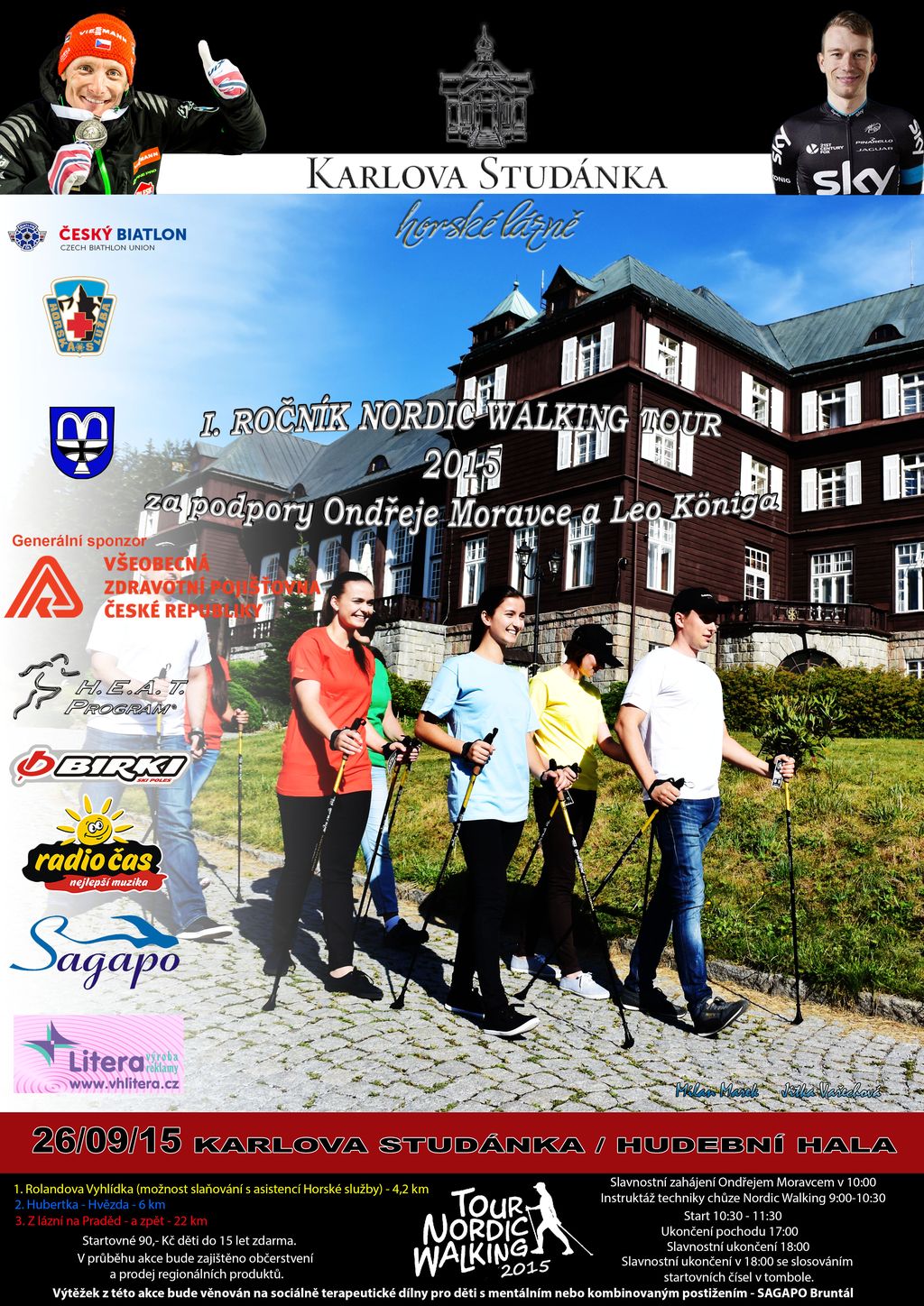 I.ROČNÍK NORDIC WALKING TOUR 2015 za podpory Ondřeje Moravce a Leo Königa se uskuteční 26.9.2015 v 9:00 hodin v Horských lázních Karlova Studánka.