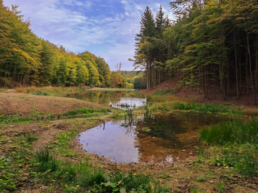 Soustavu tří vodních nádrží letos obnovily a několik nových tůní vytvořily Lesy České republiky za bezmála 8,5 milionu korun v údolí Zlatého potoka v katastrálním území Tetčice v okrese Brno-venkov.