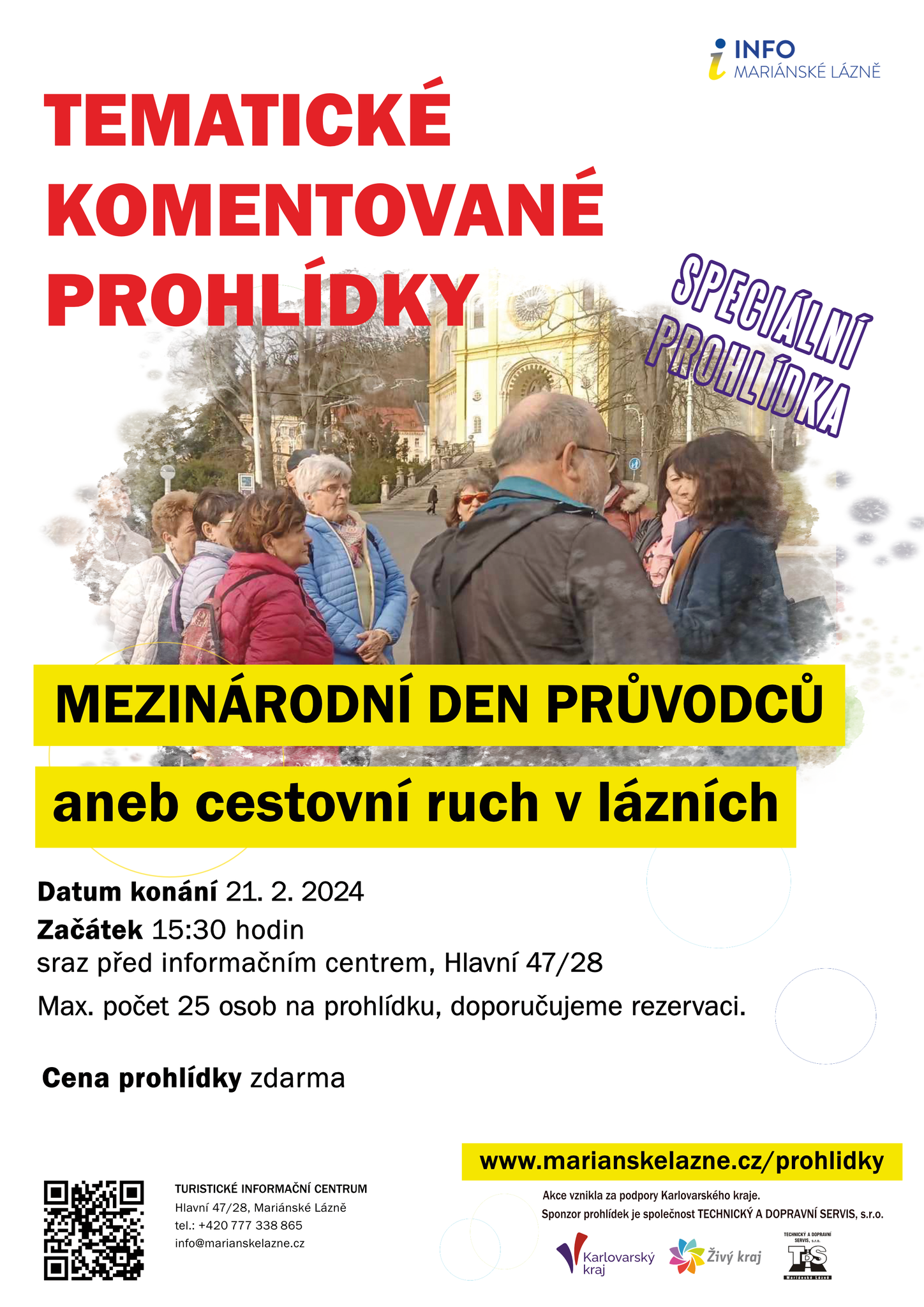 Infocentrum Mariánské Lázně se rozhodlo zorganizovat komentovanou prohlídku, která je skvělou možností, jak objevit krásy lázeňského města a získat podrobné informace od zkušeného průvodce. A co je lepším dnem pro takovou prohlídku než Mezinárodní den průvodců, který připadá na 21. února každý rok?