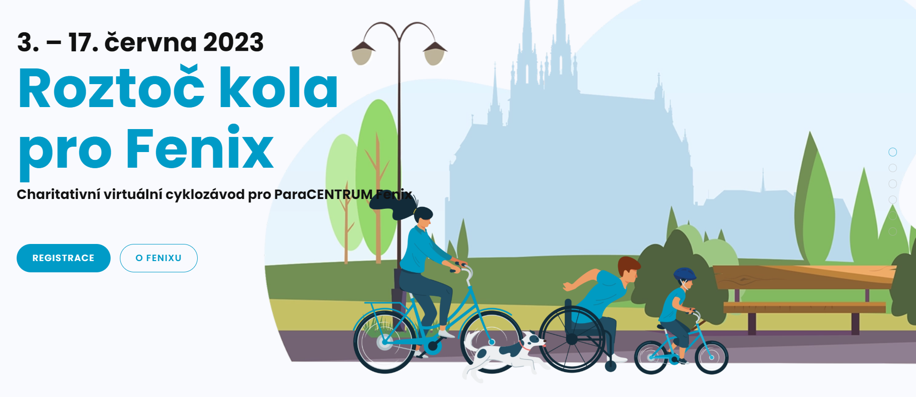 Charitativní virtuální cyklozávod Roztoč kola pro Fenix letos startuje na Mezinárodní den jízdního kola už 3. června 2023. Výtěžek ze startovného poputuje na dofinancování fyzioterapie našich klientů po poškození míchy, protože jak říká Radek, klient ParaCENTRA Fenix: „Pravidelná rehabilitace je základní stavební kámen proto, aby člověk mohl pracovat, sportovat a žít kvalitní a šťastný život v kruhu rodiny a přátel.“