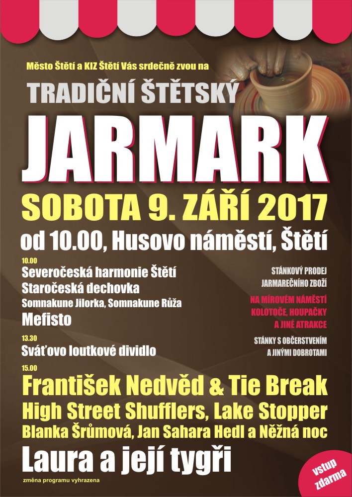 Město Štětí ve spolupráci s KIZ Štětí si vás dovolují pozvat na Tradiční štětský jarmark, který se uskuteční v sobotu 9. září 2017 na Husově náměstí ve Štětí.
