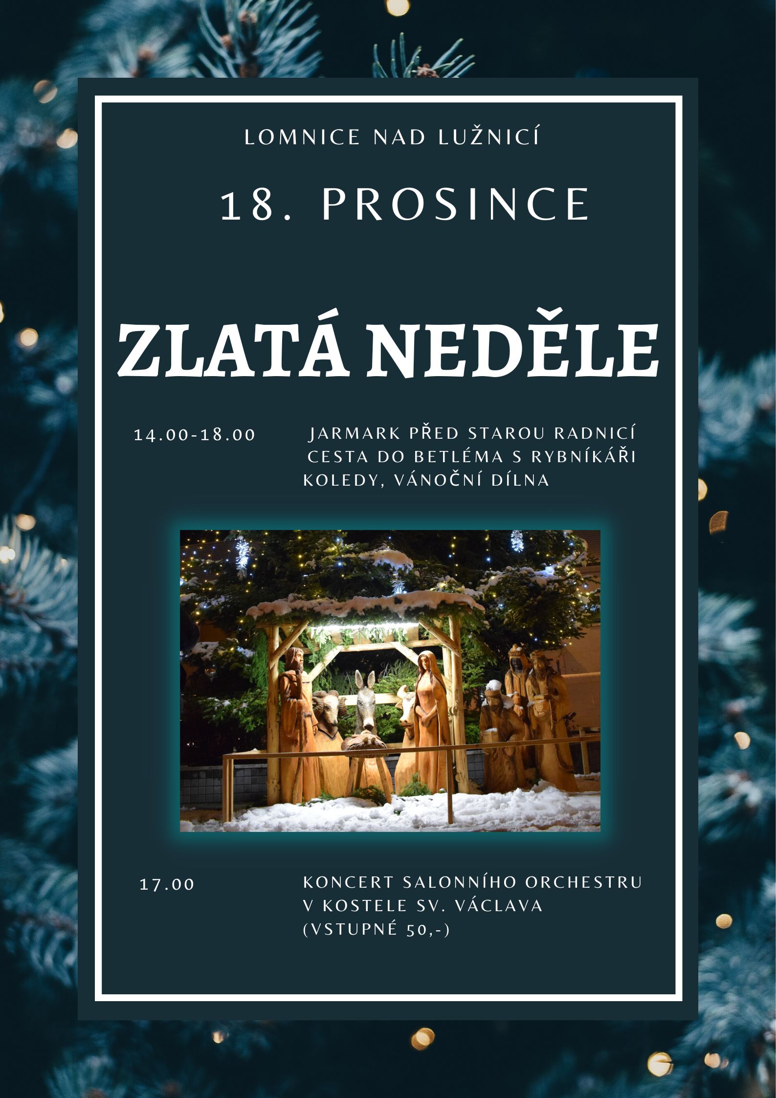 V rámci doprovodného programu vystoupí děti z mateřské školy, Rybníkáři se svou Cestou do Betléma, děti z folklorního souboru Javoráček.