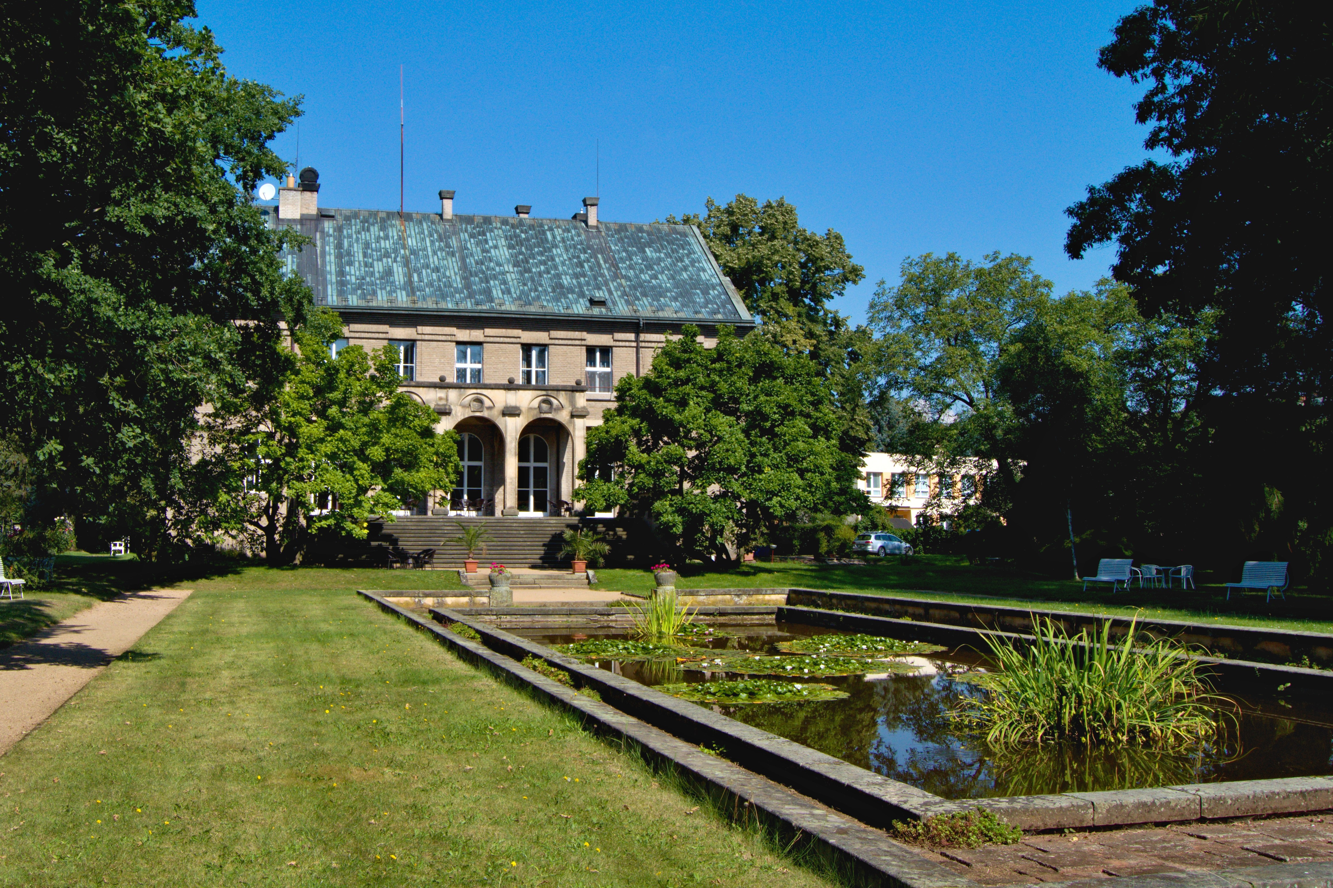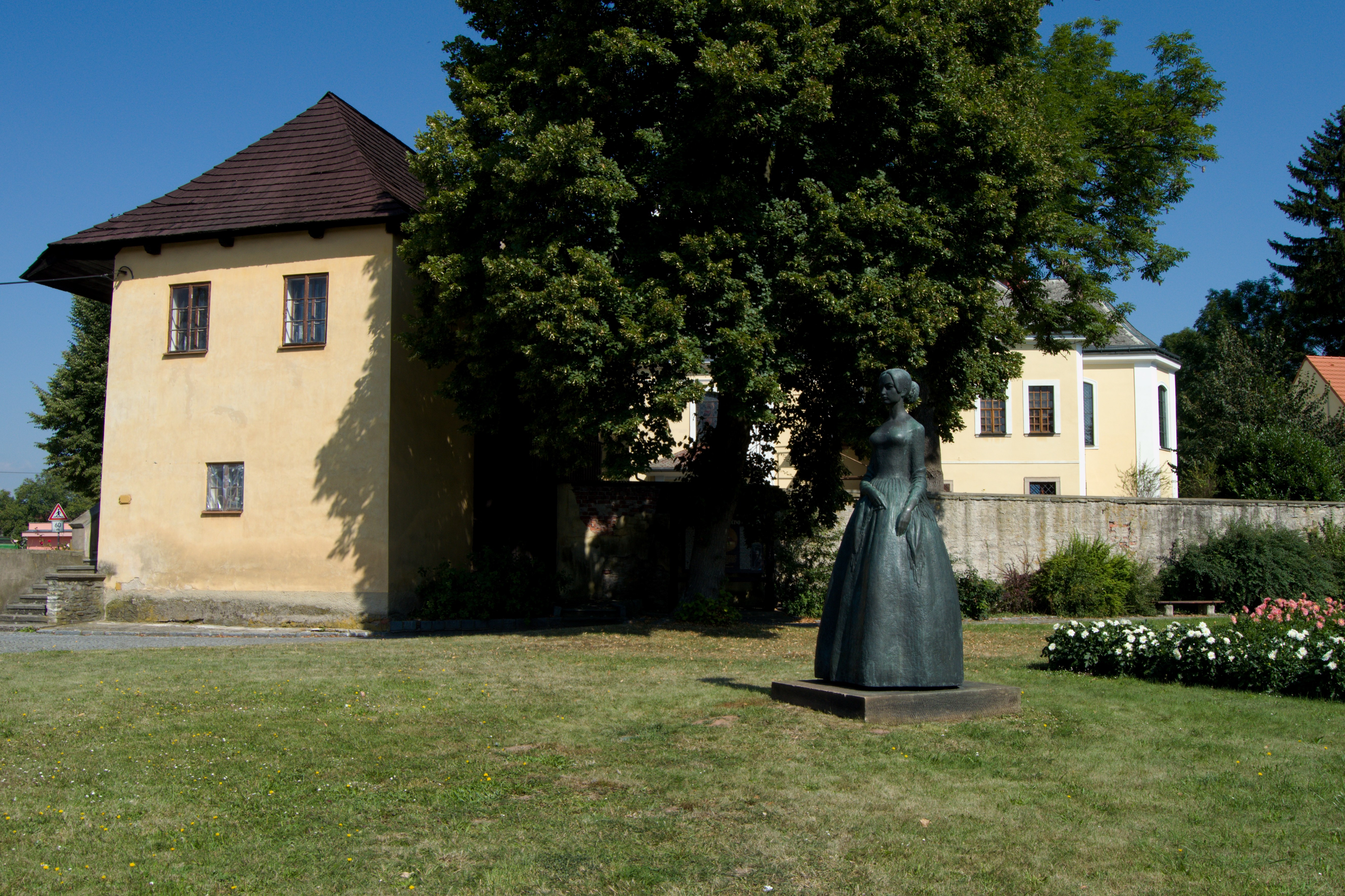 Kousek od Vily Čerych stojí barokní kostel Nanebevzetí Panny Marie, kde byli 12. září 1837 oddání Barunka Panklová a Josef Němec. Ačkoliv stále není úplně jasné, kdy se budoucí spisovatelka narodila, je naprosto jisté, že své mládí a dětství prožila na Českoskalicku. Důkazů je tu nepočítaně, zajít můžete do Muzea Boženy Němcové, které stojí hned vedle výše zmíněného kostela, nebo do Barunčiny školy, která se nachází cca 500 metrů od muzea a kde je v roubené budově původní školy replika třídy z 19. století, tedy z doby, kdy školu navštěvovala i Barunka. Další, a podle mě tou nejhezčí možností, jak si připomenout Boženu Němcovou a především její stěžejní dílo – Babičku je projížďka Babiččiným údolím, které se táhne v délce možná deseti kilometrů podél řeky Úpy z České Skalice do Havlovic. Cesta je to pohodlná, víceméně bez automobilového provozu a navíc plná zajímavých zastávek. Tou první je hned pár kilometrů za Skalicí zámek Ratibořice. Empírový zámek připomíná spíš nádhernou vilu někde v Toskánsku, jednopatrová budova s dřevěnými okenicemi a nekomplikovanou výzdobou uprostřed krásné zahrady plné palem.… Není divu, že to tu měla Barunka ráda, koneckonců stejně jako vévodkyně Kateřina Frederika Vilemína Zaháňská, které sloužily Ratibořice jako letní sídlo.