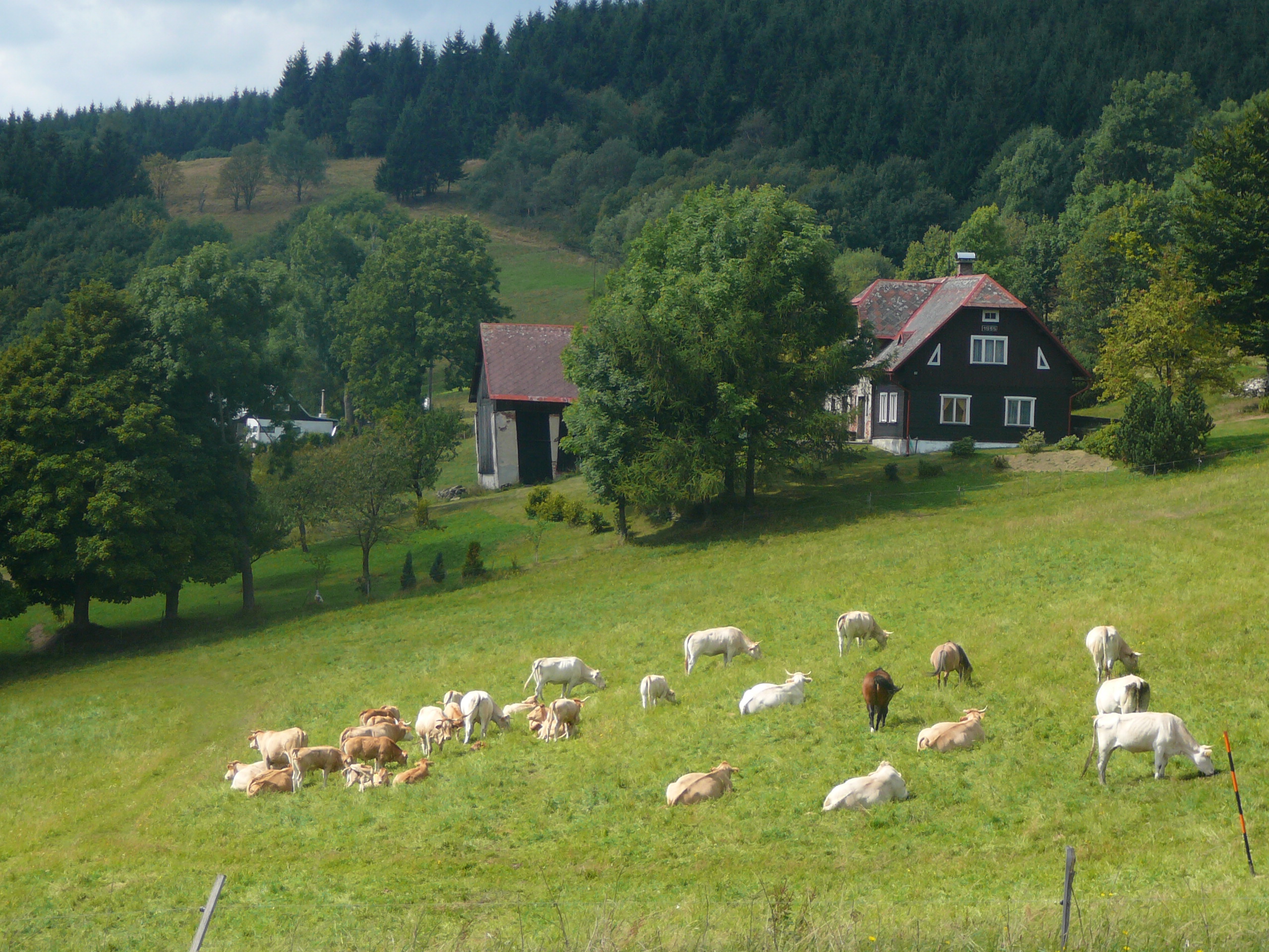 Je to sice jen pár desítek minut co jsme sedli na kolo, ale charakter krajiny i její nálada se změnila doslova k nepoznání. I když jsme jen pár kilometrů od stotisícového Liberce, tak po civilizaci tu není ani památka. Na svazích se pasou ovce a krávy, mezi nimi jsou hala bala rozházené horské chaloupky. Výhledy do krajiny, ať už na Lužické Hory nebo kopce v okolí Ralska jsou nepopsatelné a mezi tím vším, jako třešnička na dortu stojí hospoda U Šámalů. Domácí kuchyně, dobré pivko a posezení venku jsou už jen bonusem k místnímu nadstandardu. A pro zvídavé ještě jedna zajímavost, právě tady se nachází rozvodí Labe – Odra.