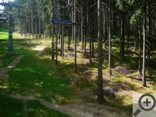 Naším cílem je zdolání Ještědského hřebene, který mimochodem v minulosti odděloval geograficky německy a česky mluvící obyvatelstvo. Pojedeme z Ještědu směrem na jihovýchod. Celou cestu lze projet na kole, anebo si ji trošku ulehčit a nahoru vyjet lanovkou a pak už víceméně pohodlně sjíždět po hřebenovce a kochat se krajinou. Při využití sedačkové lanovky, vystoupíte na horní stanici Skalka, odkud je to na vrchol Ještědu cca 150 výškových metrů a dva kilometry, takže žádná tragédie. A pro toho, kdo na Ještědu nikdy nebyl, je návštěva našeho nejkrásnějšího vysílače víceméně povinností. Mimochodem přímo pod sedačkovou lanovkou se rozprostírá krásný, i když na můj vkus celkem náročný bikepark. Kdo by po cestě nahoru dostal chuť na jeho zdolání, ale netroufl si na svém kole, tak si může kousek od lanovky půjčit speciální sjezdové nebo horské kolo a k tomu i další potřebnou výbavu (helmu, páteřák).