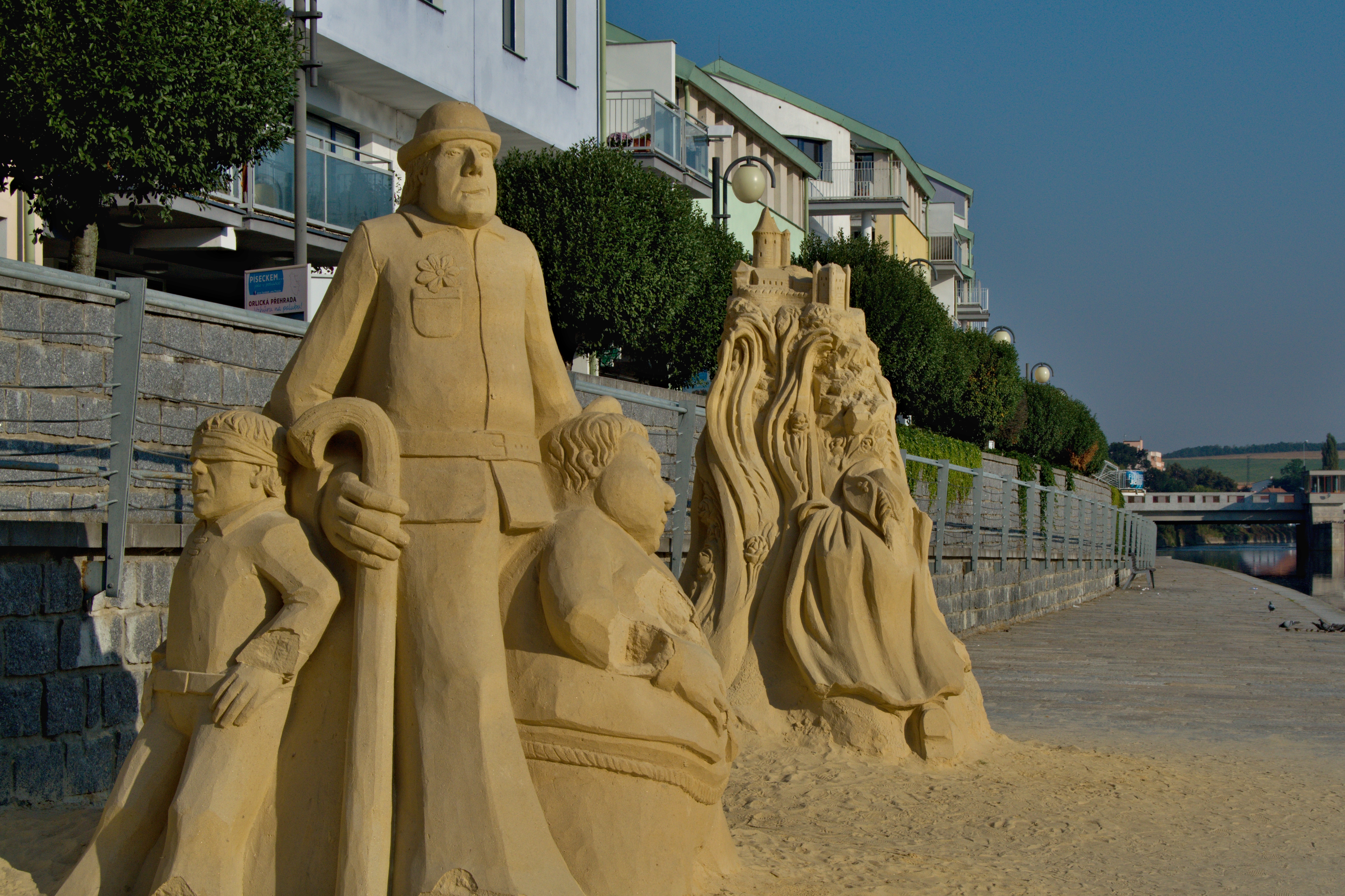 Výše popsaná cesta má dokonce své jméno, jmenuje se Sedláčkova stezka a začíná přímo v centru Písku. Původně měřila asi 25 km, ale po napuštění Orlické přehrady (stalo se roku 1962) se musela její trasa změnit a trošku protáhnout. Což ale nakonec nebylo ke škodě, protože se díky tomu podíváme i do vesničky, kde se natáčel asi nejlepší český ,,western". Ale všeho dočasu, nejdříve se porozhlédneme trošku po Písku samotném. Sedláčkova stezka začíná u nejstaršího dochovaného mostu v Čechách, kterému se dnes říká Kamenný. Ale nebylo to tak vždycky, jeho původní název zní Jelení. Podle pověsti se totiž měl most pojmenovat podle toho, kdo jej první přejde. A k údivu všech to nebyl ani významný domorodec, urozený šlechtic, či na v době otevření mostu na návštěvě pobývající panovník, nýbrž čtyřnohý obyvatel zdejších lesů… A jedna zajímavost, byť byl most stavěn v gotickém slohu, je zdoben replikami barokních soch na svých ochozech a originály pohádkových soch z písku (vždyť jsme přece v Písku), tyčících se na nábřeží Otavy. Dalším zajímavým tipem k návštěvě přímo v Písku je místní Sladovna. Byla postavena koncem 19. století a jako sladovna sloužila až do roku 1973, pak se změnila na skladiště a začala pomalu chátrat. Chátrala ovšem jen do doby, než se objevil nápad změnit sladovnu s malým s, na Sladovnu s velkým S. Toho místní dosáhli tím, že zde vybudovali nádherné kulturní centrum, jehož součástí je mimo jiné Expozice dětské ilustrace, Prácheňské muzeum či skvěle fungující infocentrum. A aby to nebylo tak akademické, je tu i příjemná a útulná hospoda a celé nádvoří Sladovny působí jako malá oáza, kde nechybí ani vodotrysk.