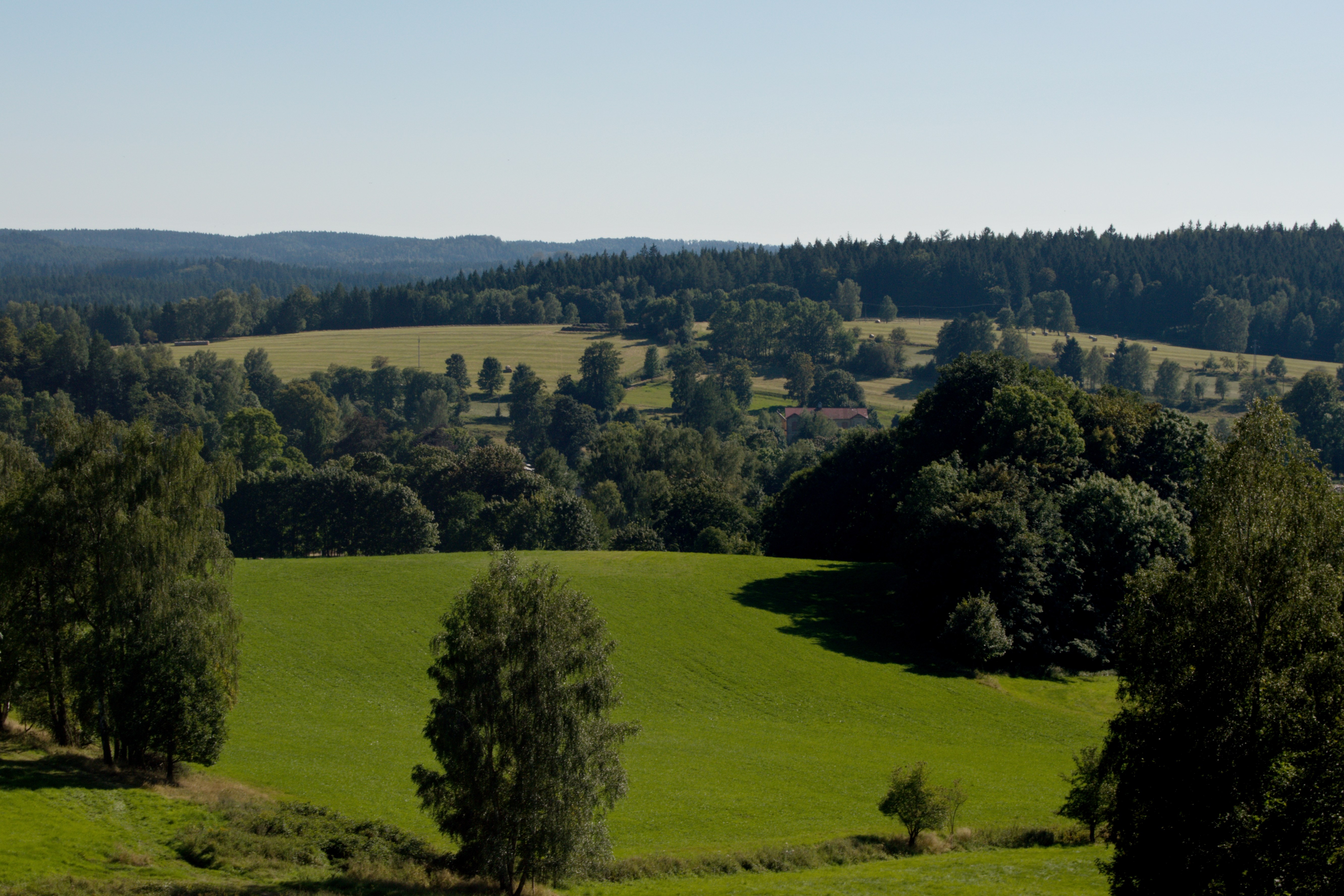 Abych pravdu řekl, nejsevernější výběžek České republiky a jeho přirozené centrum, tedy nejseverněji položené město u nás - Šluknov, mě vždycky trošku lákaly. Představoval jsem si Bohem zapomenutý kraj, kde jsou dodnes vidět stopy vysídlení a kde lišky dávají dobrou noc. Skutečnost je ovšem mnohem příjemnější. Samotný Šluknov se skládá ze čtyř částí (Nové Hraběcí, Císařský, Království a Rožany), ve kterých jsou hned dva kostely a jedna kaple, což vyvrací mou představu o bohem zapomenutém kraji. A malebná krajina Šluknovského výběžku s nepříliš vysokými kopci, úhlednými vesničkami a celkem přehledným turistickým značením je přímo ideální pro cyklotoulky. V dosahu jsou hned dvě chráněné krajinné oblasti (Lužické hory a Labské pískovce) a dva Národní parky (České a Saské Švýcarsko), díky nimž patří tato oblast k nejunikátnějším místům ve střední Evropě a tipů na výlety je tu tudíž nepočítaně. Přímo ve Šluknově je celkem hezké náměstí, v jehož středu se tyčí barokní sloup Nejsvětější trojice, vedle něj stojí empírová kašna se dvěma chrliči, jejíž jedinečnost spočívá v tom, že je vyrobená z jednoho kusu kamene a naproti nim dožívá nádherný secesní dům, který už má to nejlepší asi za sebou, prostě celkem normální náměstí.