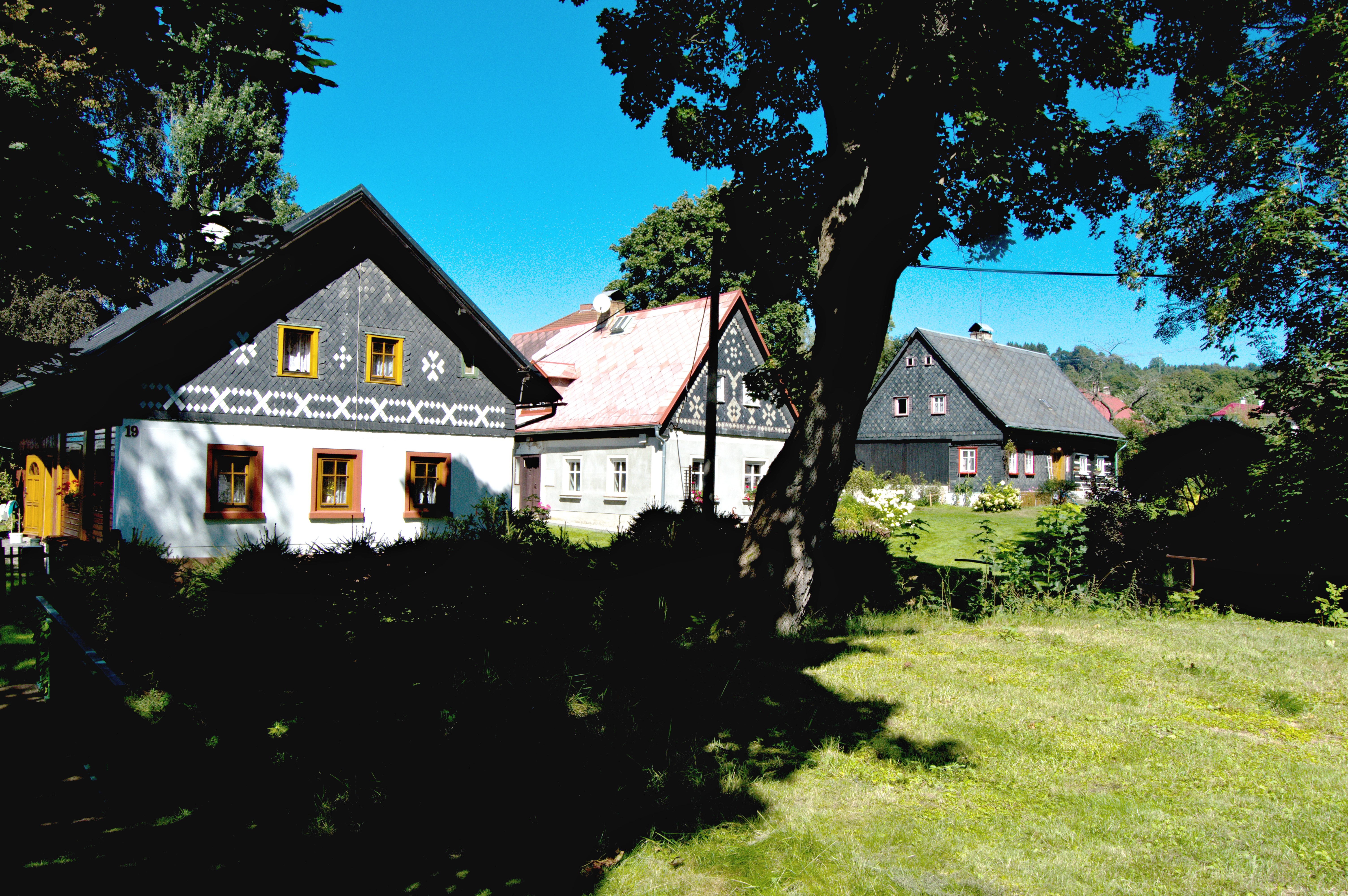 To, co ovšem na náměstí chybí a co je přitom tak trošku poznávacím znamením zdejšího kraje jsou podstávkové tkalcovské domy. Co to je? Podstávkový dům v sobě spojuje tradici lužického či českého roubeného domu uzpůsobeného pro oblasti, kde v zimně teploty klesají dlouhodobě pod bod mrazu, a tradici franckého či durynského hrázděného jednopatrového domu, uzpůsobeného pro provozování řemesel. Takových domů neuvidíte v Čechách mnoho, naštěstí v okolí šluknovského náměstí je jich celkem dost a některé z nich jsou pořád ve výborné kondici. Při důkladnější prohlídce města nemůžete přehlédnout jeho další zajímavost: Překrásně zrekonstruovaný zámek ve stylu anglické renesance obklopený hezky udržovaným anglickým parkem. S jeho návštěvou určitě neváhejte, už jen kvůli příjemné cukrárně, která je v jeho útrobách. A jako takové pietní rozloučení se Šluknovem doporučuji zastávku na místní Křížové cestě, kterou tvoří dvanáct zastavení a jejíž součástí je i Getsemanská zahrada a pomník padlým z 1. světové války.