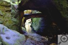 Ovšem všeho do času. Další vesnicí na trase je Kyjov a tady se to turisty opět jen hemží a není divu. Z Kyjova do Brtníků, nebo spíše po Turistický most (což je asi v půlce cesty) vede jedna z nejkrásnějších stezek, kterou NP Česko Saské Švýcarsko má. Navíc vyvrací u nás celkem běžný, i když falešný dojem, že skalní oblasti se hodí jen pro pěší turistiku. Pro cestu Kyjov - Brtníky je ideální kolo! Samozřejmě i tady budete muset občas z bicyklu slézt, protože některé vyhlídky jsou přístupné jen po schůdcích, nebo budete procházet příliš úzkými stezkami, ale to nevadí. Nejznámější a nejpopulárnější atrakce na trase je asi Kinského vyhlídka, ale komu by se nechtělo trmácet nahoru, může si kousek od ní prohlédnout romantickou průrvu potoka s jeskyní zvanou Vinný sklep či Čertovu skálu s letitou "pamětní deskou". Po celou cestu pojedete okolo potoka, který je vlastně říčkou a nazývá se Křinice. Tato říčka o celkové délce asi 30 km protéká částečně našim územím, částečně Německem a v délce 7 km tvoří státní hranici. To nejkrásnější z Kyjovského údolí končí u Turistického mostu, který postavili skutečně turisté, a to již v roce 1908. Z mostu zpátky do Šluknova už nejde zabloudit, takže šťastnou cestu a užijte se zdejší pohodový kraj. Další tipy na www.mesto-sluknov.cz.