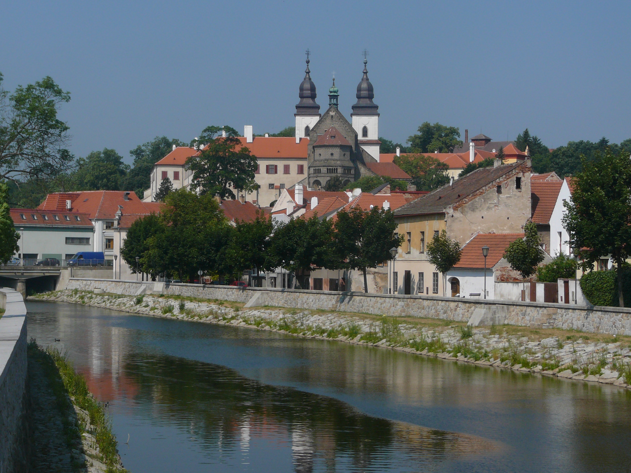 Třebíč je rozložena na obou březích řeky Jihlavy, která tvoří i přirozenou osu města. A na jejím pravém břehu začneme i dnešní putování. Stojí tu totiž nově vybudovaný TouristPoint, který cyklistům nabízí nejen příjemné posezení, ale i možnost využití úschovny zavazadel včetně kol, toalety a sprchy a na požádání i základní nářadí pro jednoduché opravy kol či lékárničku pro ošetření drobných poranění. Ještě než vyrazíte přes řeku, tak si udělejte krátkou zastávku na pravém břehu a navštivte Městskou věž. Z výšky 35 metrů je krásný výhled na celou Třebíč a hodinový ciferník na věži má průměr 5,5 metru, což ho řadí mezi největší hodinové ciferníky v Evropě.