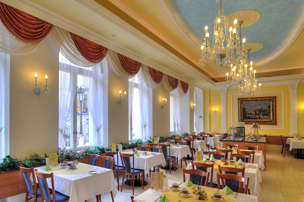 Příjemné posezení a bohatý výběr teplých a studených jídel po celý den nabízí restaurace BERNARD v sanatoriu Kriváň